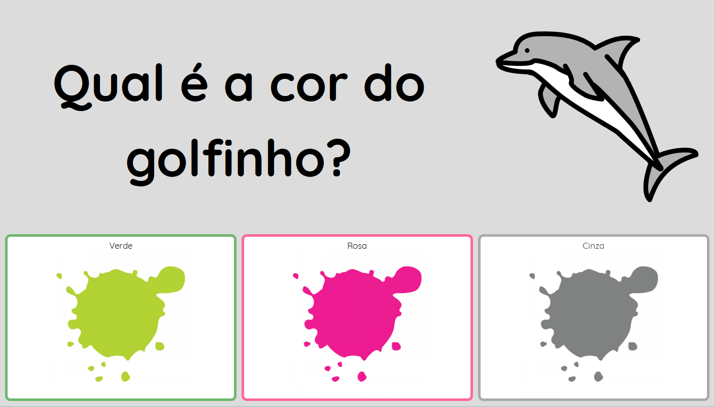 Cada prancha contém uma quantidade de 1 a 10 de cãezinhos para contar e apresenta três respostas para selecionar.