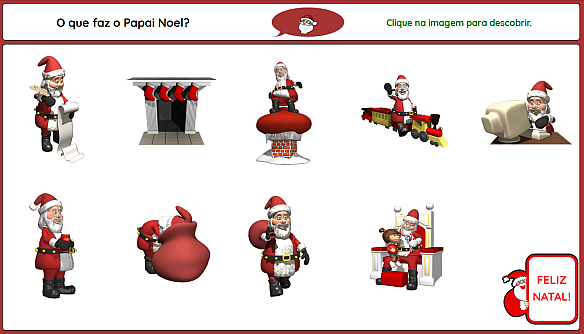 Atividade com tema natalino na qual são apresentadas (com vídeo e texto) algumas ações que têm como protagonista o Papai Noel. Esta atividade pode ser proposta juntamente com o exercício "Escreva o que o Papai Noel faz".
